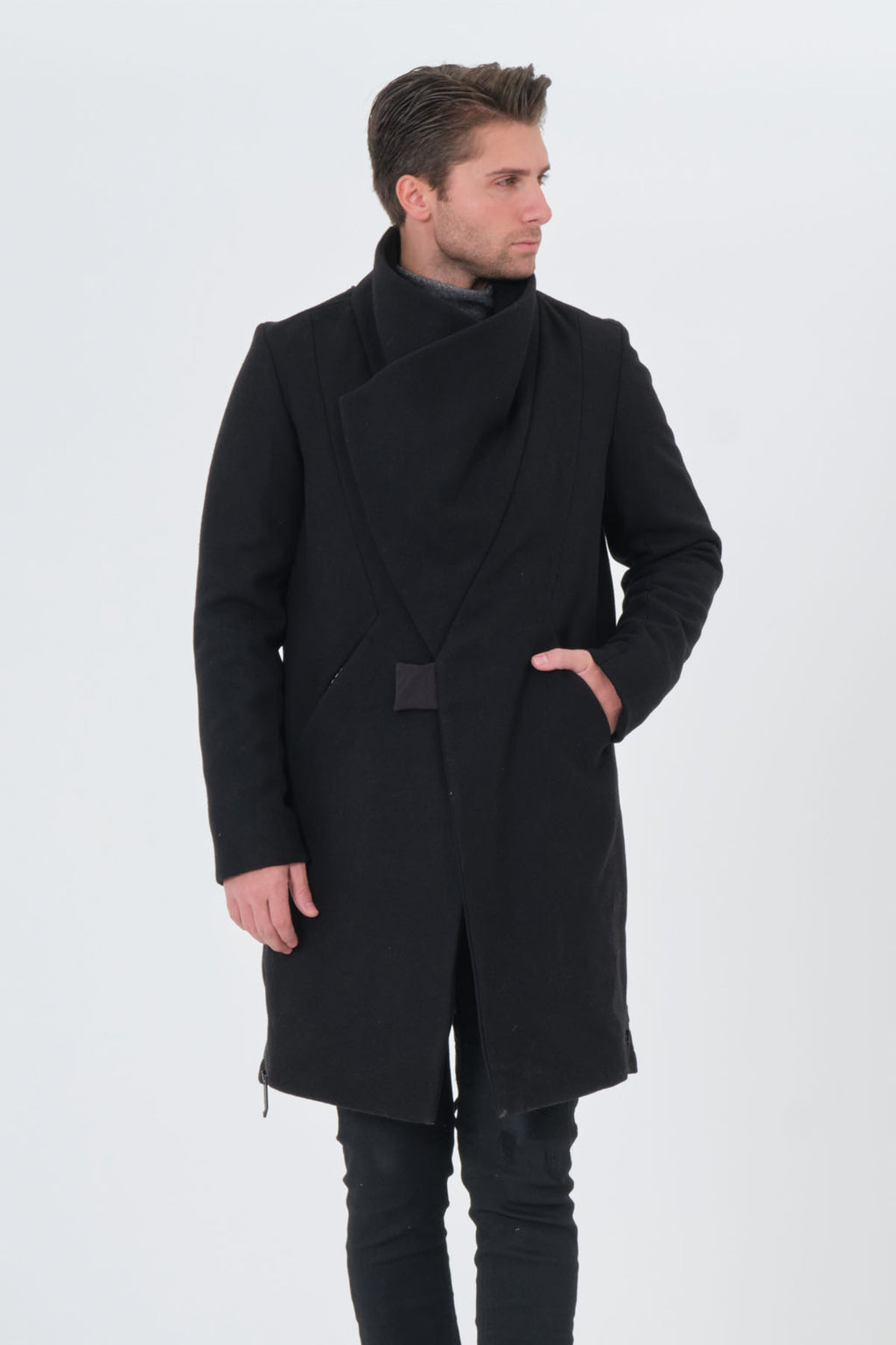 Elevate your formal and stylish look with the Barbarossa Moratti Men's Black Long Wool Blended Coat, the perfect choice for fall and winter. This meticulously designed coat combines warmth, style, and versatility for the modern gentleman.