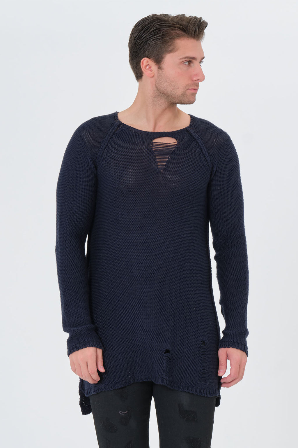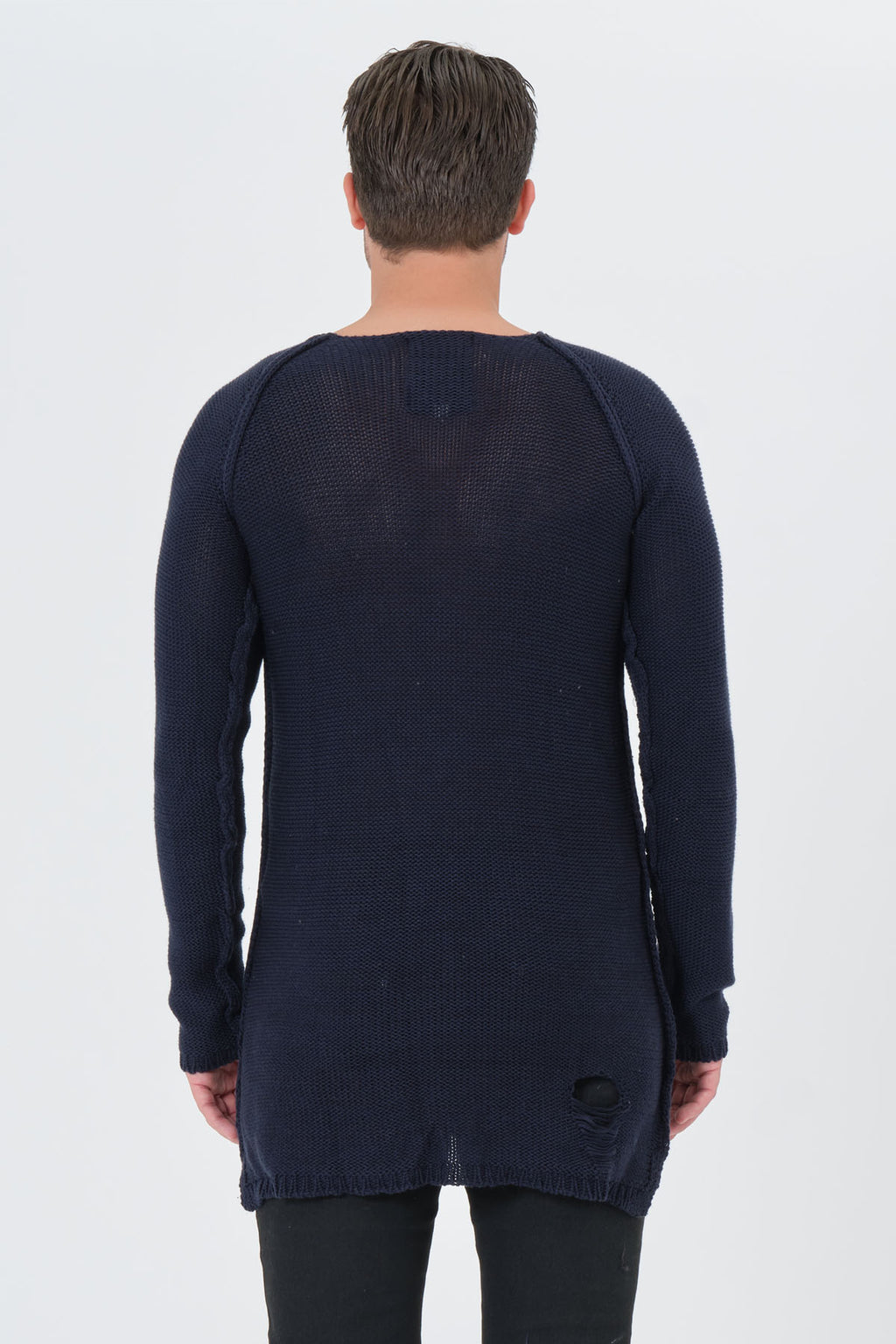Elevate your casual wardrobe with the Barbarossa Moratti Navy Blue Crew Neck Sweater, a perfect blend of comfort and style. This regular-fit sweater boasts a worn-out look that exudes effortless charm. The stylish cuts on the chest and the back of the skirt add dynamism to your look, complemented by large stitches for a unique touch. Crafted with care in Turkey, this sweater offers both comfort and fashion-forward design.