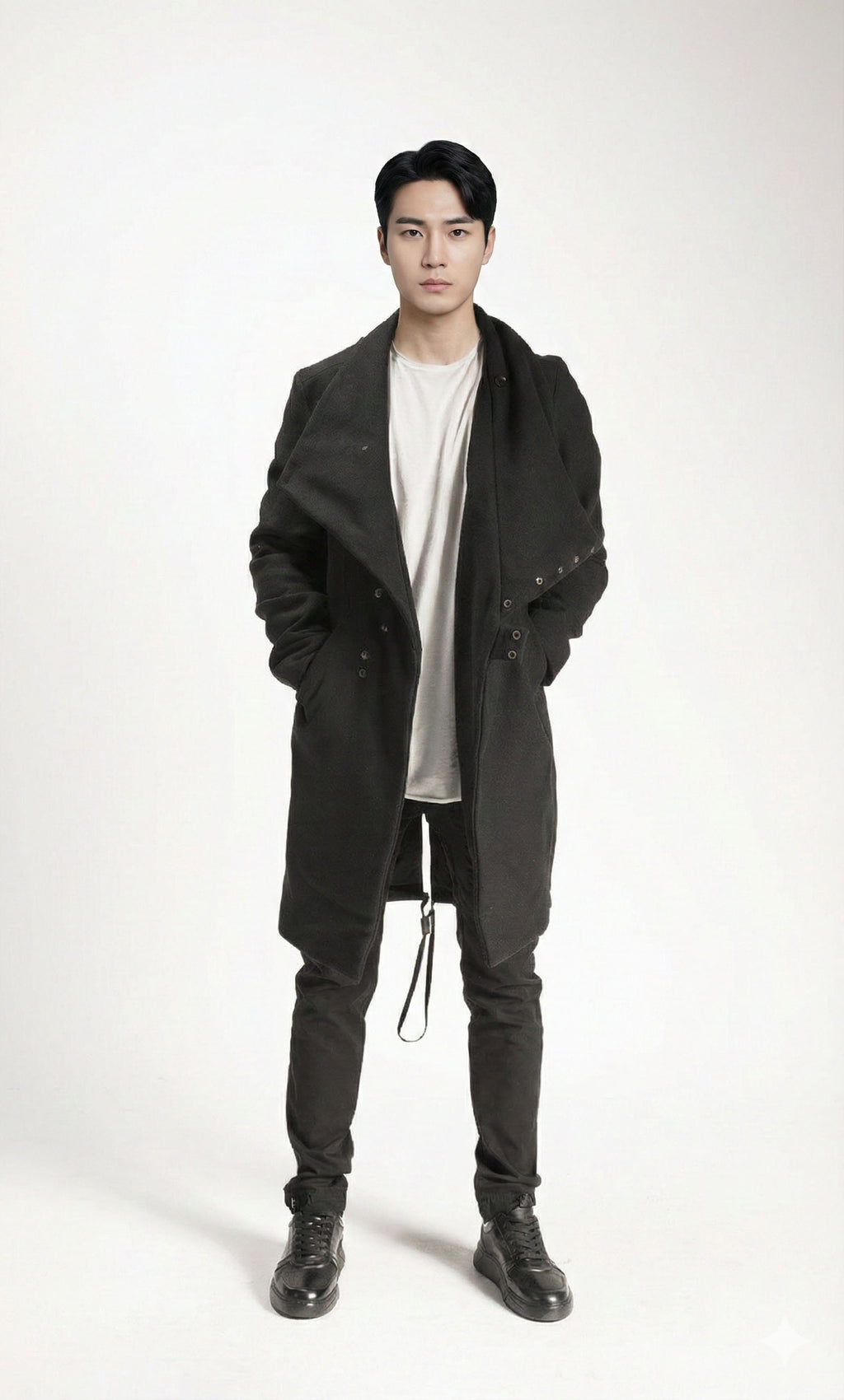 Draped Collar: Adds a touch of sophistication.